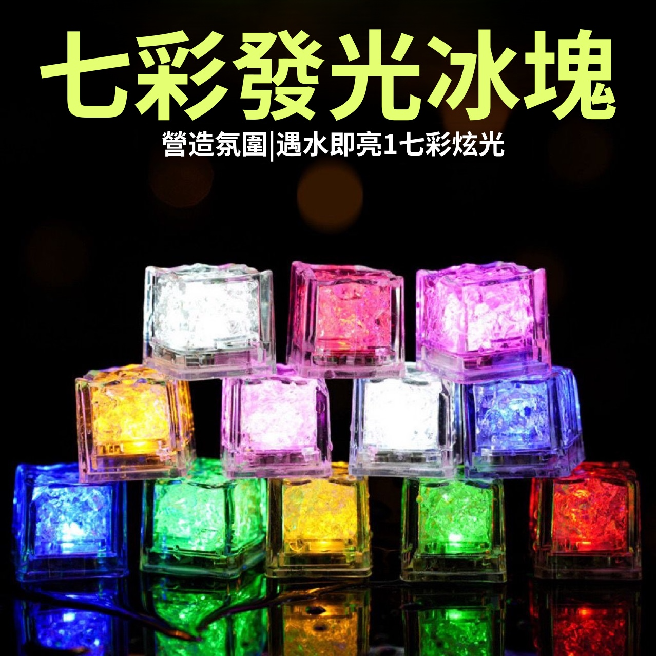 七彩發光冰塊LED氣氛燈遇水閃光玩具